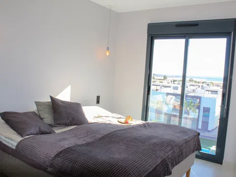 Exclusive Penthouse with Private Rooftop Terrace Built in 2019Are you dreaming of a modern holiday home in Spain where luxury, comfort, and tranquility meet This elegant penthouse apartment has it all a spacious private rooftop terrace, stylish interiors, fantastic communal facilities, and a unique location close to the famous La Mata salt lake.Property HighlightsPrivate 67 m2 rooftop terrace with open views towards El Raso and the mountains2 bright bedrooms with built-in wardrobes master with en-suite bathroom2 modern bathrooms with sleek finishesSpacious open-plan kitchen and living area with high ceilings and natural lightSouth-facing terrace overlooking the palm garden, pool, and Torreviejas evening skylineAir conditioning in both the living room and bedroomsPrivate ...