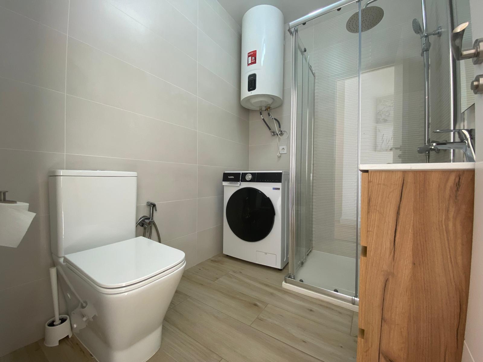 Completely renovated townhouse where everything has been replaced with brand-new installations: electrical wiring, plumbing, air conditioning units, windows, and doors. Only high-quality materials have been used.The house is fully furnished and equipped with all appliances ready to move into.Everything shown in the photos is included.The house has two floors.Ground floor:Spacious and bright livingdining room integrated with the kitchen1 bedroom1 guest toiletFront terrace of 20 m² ideal for enjoying your morning coffee or relaxing at sunset, sun all dayRear terrace of 30 m² with access to the patio and storage room perfect for barbecues, outdoor dining, or a childrens play areaFirst floor:2 bedrooms with built-in wardrobes and access to their own terraces1 bathroom with shower10 m² terrace ideal for sunbathing or relaxing in privacy15 m² terrace overlooking the park and the communal swimming poolSwimming pool: CommunalLocation: Excellent quiet area yet close to the town centre and the beaches.