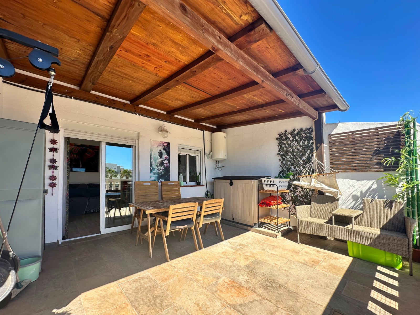 It enjoys a convenient location in close proximity to the attractive Cabo Roig beach, and offers both a practical balcony with uninterrupted views and a secluded garden space, allowing for year-round enjoyment of the property.